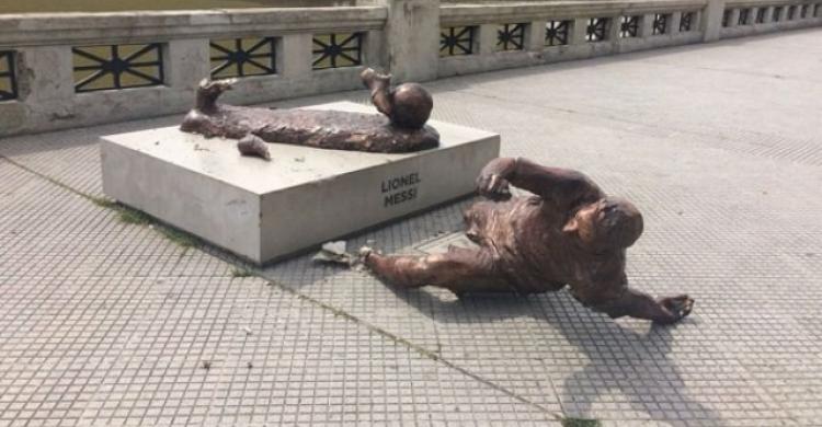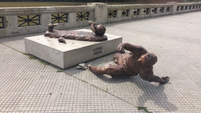 ووجد تمثال النجم الأرجنتيني ملقى على الأرض، بعد أن قامت مجموعة من الأفراد، لم تتمكن قوات الشرطة من تحديد هويتهم بعد، بقطع ساقيه من بعد كاحل القدم.