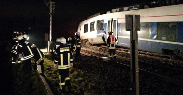 وذكر تلفزيون إيه.آر.دي الألماني أن الحادث وقع بعد أن اصطدم قطار ركاب بقطار للبضائع في مدينة ميربوش.