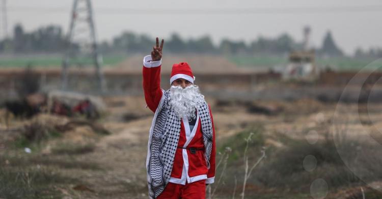 شارك "بابا نويل" الفلسطيني، أمس الثلاثاء، في المظاهرات الغاضبة التي اندلعت بين الفلسطينيين وجنود الاحتلال الإسرائيلي على الحدود الفاصلة شرقي قطاع غزة.