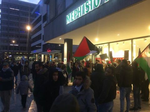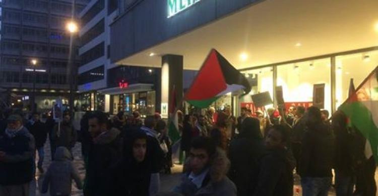 وشارك بالتظاهرة العشرات من إبناء الجاليتين الفلسطينية والعربية، ولفيف من أبناء المدينة المتضامنين مع القضية الفلسطينية، وممثلين عن بعض الأحزاب السياسية ومؤسسات المجتمع المديني والنقابات العمالية.