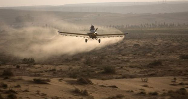 رشت طائرات الاحتلال "الإسرائيلي" موادًا كيميائية على أراضي المواطنين الزراعية شرق غزة.