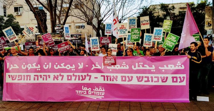 وقالت: "المتظاهرون، عربًا ويهودا وفلسطينيين جاؤوا للاعتصام هنا اليوم من أجل وقف الحرب، ووقف القتل".