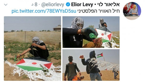عقب موقع "0404" العبري، على إرسال شبان فلسطينيين، طائرات ورقة لمناطق غلاف غزة بالقول: "سلاح الجو الفلسطيني يصل مناطق الغلاف جنوبي البلاد".