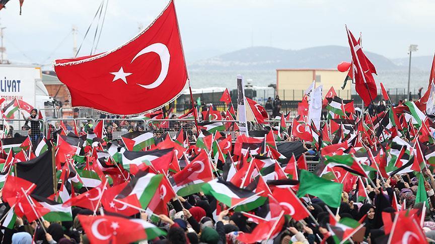 توافد عقب صلاة جمعة اليوم عشرات الآلاف من الأتراك بمدينة إسطنبول، للمشاركة في تجمع "اللعنة على الظلم والدعم للقدس"، مشكلين أمواجًا بشرية من منطقة "أقصراي" وصولًا إلى ميدان "يني قابي".