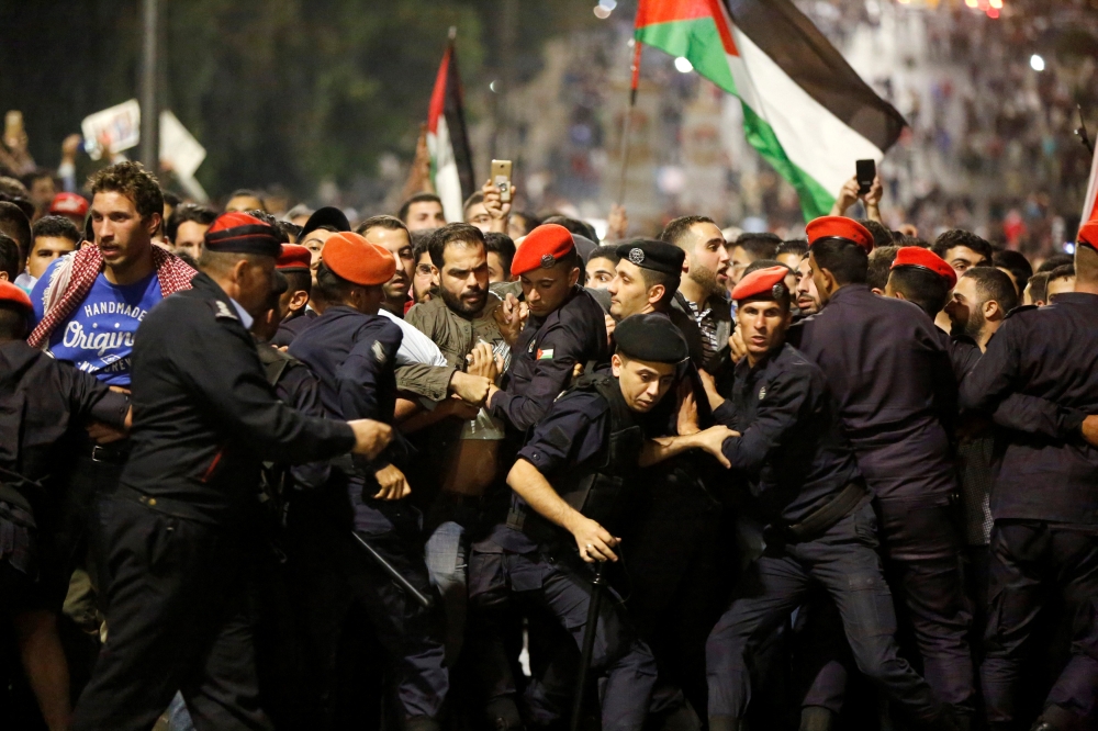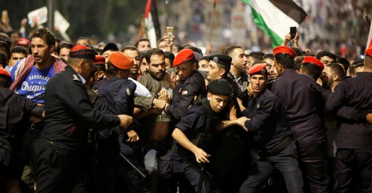 تواصلت الاحتجاجات في عمان وعدد من المدن الأردنية، ليل السبت - الأحد، ضد مشروع قانون ضريبة الدخل وسياسة رفع الأسعار، وذلك بعد ساعات من فشل لقاء بين ممثلي النقابات المهنية ورئيس الوزراء هاني الملقي، وفق ما نقلت وكالة "فرانس برس" عن مراسلها.