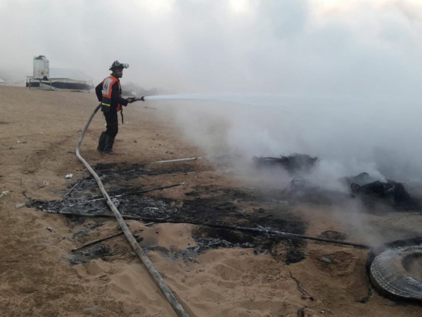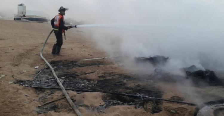 وألقت طائرات الاستطلاع شعل نارية على إطارات الكوشوك بالمخيم مما تسبب بإشعالها بالإضافة لحرق عدد من الخيام بمخيم العودة برفح، فيما هرعت طواقم الدفاع المدني للمكان فور اشتعال النيران وقامت بالسيطرة عليها.