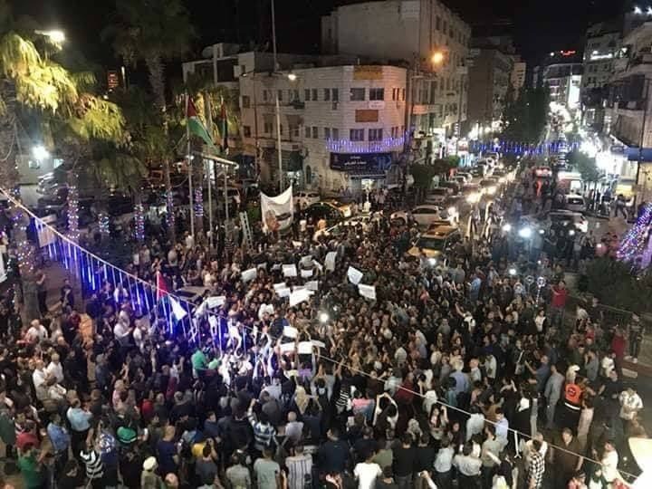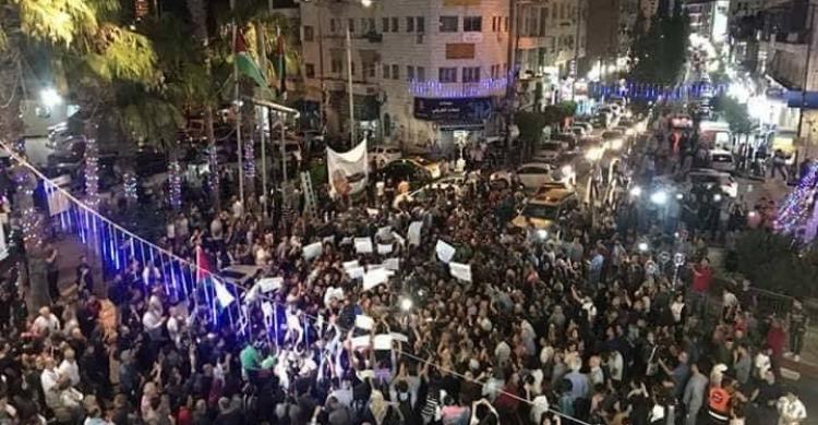 تظاهر مئات الفلسطينيين، مساء اليوم الأحد، وسط مدينة رام الله لمطالبة السلطة الفلسطينية بإنهاء الإجراءات المفروضة ضد قطاع غزة.