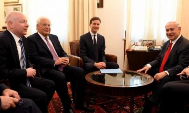 وقال مسؤولون إسرائيليون، إن جاريد كوشنر مستشار ترامب وجيسون جرينبلات مبعوث الرئيس إلى الشرق الأوسط وديفيد فريدمان سفير الولايات المتحدة إلى إسرائيل عقدوا اجتماعا استمر أربع ساعات مع نتنياهو في القدس. وحضر الاجتماع أيضا سفير إسرائيل لدى واشنطن رون ديرمر.
