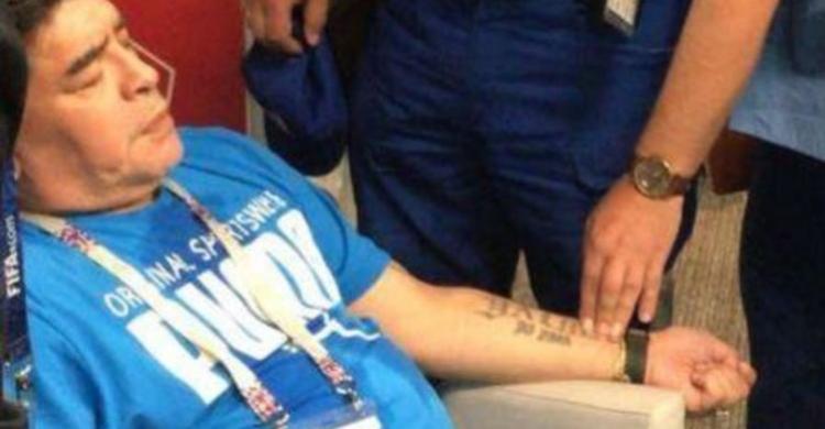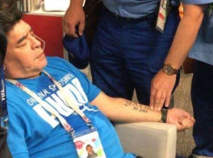 وسقط مارادونا بعد شعوره بالتعب الشديد، لتوتره مع أحداث المباراة، ليتم نقله مباشرة إلى المستشفى والقيام بالفحوص اللازمة.