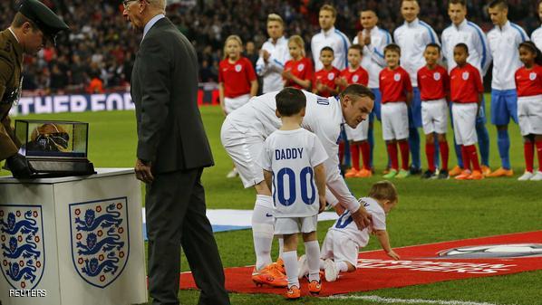 احتفل المهاجم واين روني بمباراته الدولية الرقم 100 مع منتخب إنجلترا بفوزه على ضيفه السلوفيني 3-1 في الجولة الرابعة من منافسات المجموعة الخامسة المؤهل إلى نهائيات كأس أوروبا 2016 لكرة القدم.