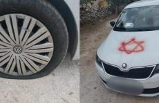 مستوطنون يعطبون إطارات مركبات ويخطون شعارات عنصرية شمال سلفيت