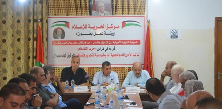 غزة: «الحرية للإعلام» ينظم ورشة بعنوان «السياسة الخارجية الأميركية بين الانعزال والتدخل» 18 يوليو 2022