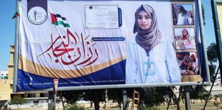 مفترق السرايا يتزين بصورة الشهيدة المسعفة رزان النجار