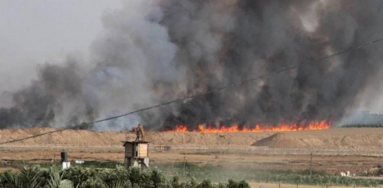 النيران تشتعل بالأحراش القريبة من مواقع الاحتلال شمال غزة