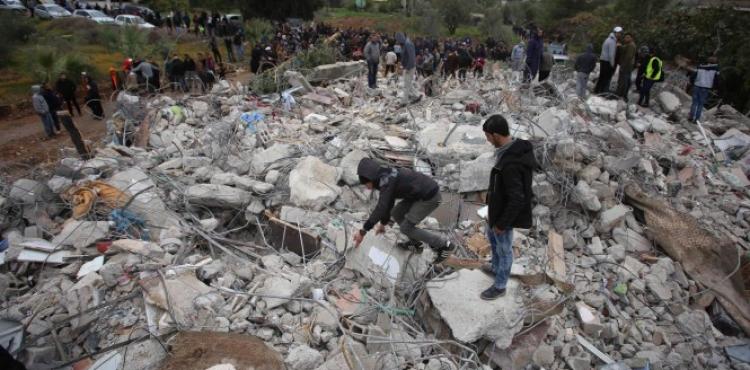 طواقم الدفاع المدني تتمكن من إزالة 90% من أنقاض بيت الشهيد جرار بجنين