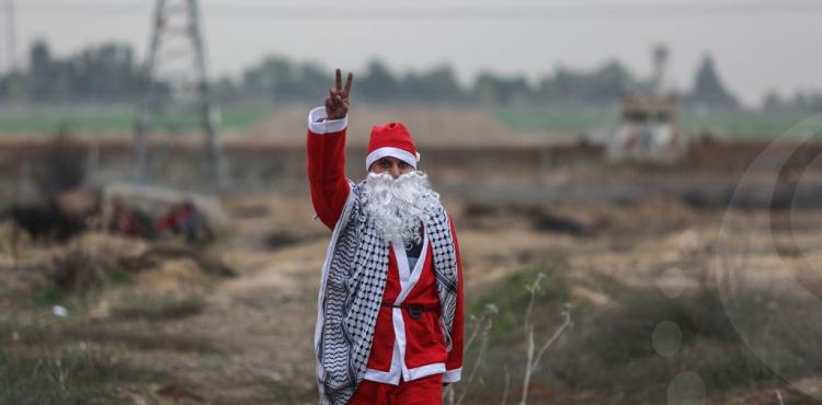 (بالصور) "بابا نويل" يشارك بمظاهرات الغضب على حدود غزة الشرقية