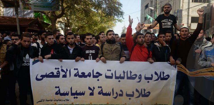 بالصور.. طلبة جامعة الأقصى يعتصمون أمام مقراتها لاستمرار الأزمة