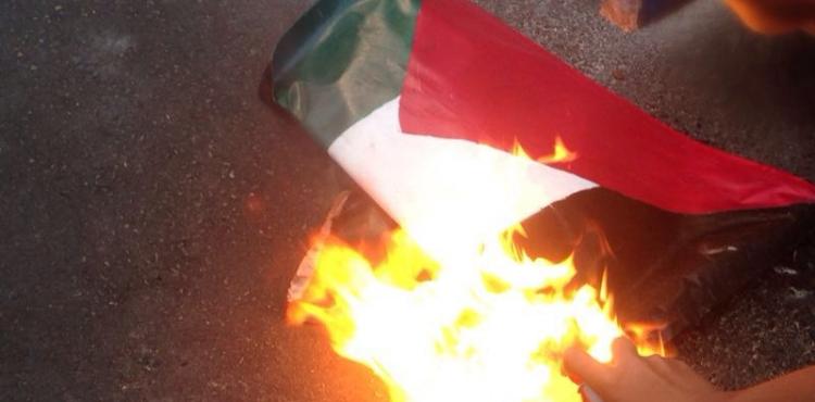 جنود الاحتلال يحرقون علم فلسطين على حاجز بنابلس