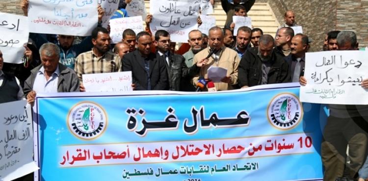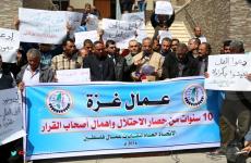 عمال غزة يتظاهرون تنديدا ببرنامج تشغيل الخريجين ( صور)
