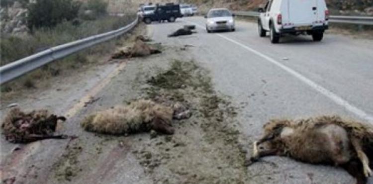 نفوق عشرات الأغنام دهسها مستوطن بالأغوار