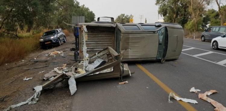 (بالصور) إصابات بانقلاب شاحنة عسكرية لجيش الاحتلال عند حدود غزة