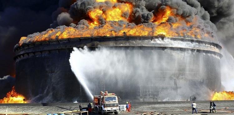 الحكومة الليبية تتفق مع شركة أمريكية لإخماد حريق ميناء السدرة