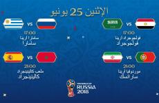 جدول مباريات اليوم الخميس بالمونديال الروسي