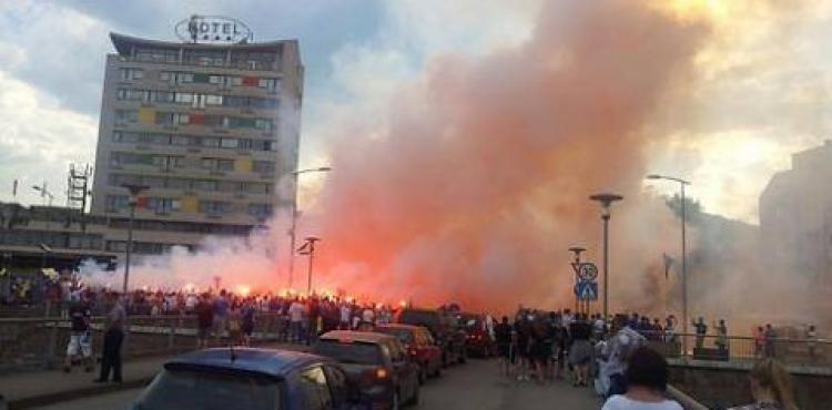 (صور) آلاف البوسنيين يحاصرون فريق الاحتلال لكرة القدم في أحد الفنادق