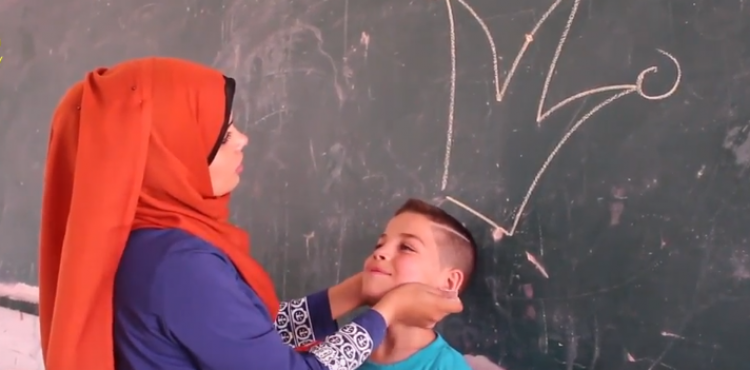 المعلمة "أبو دلال" تبتكر أسلوباً جديداً لترسم الانجليزية في أذهان طلابها (فيديو)